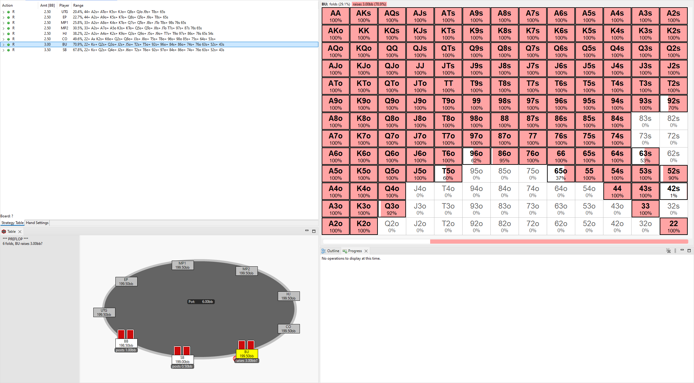 - Open Raise Size: 2.5bb (BTN: 3bb, SB: 3.5bb)