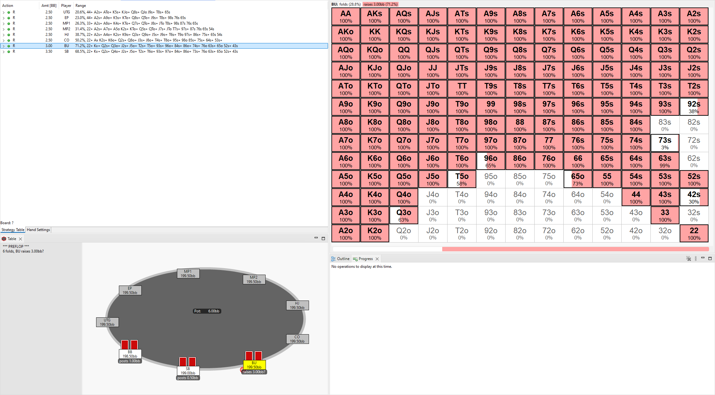 - Open Raise Size: 2.5bb (BTN: 3bb, SB: 3.5bb)