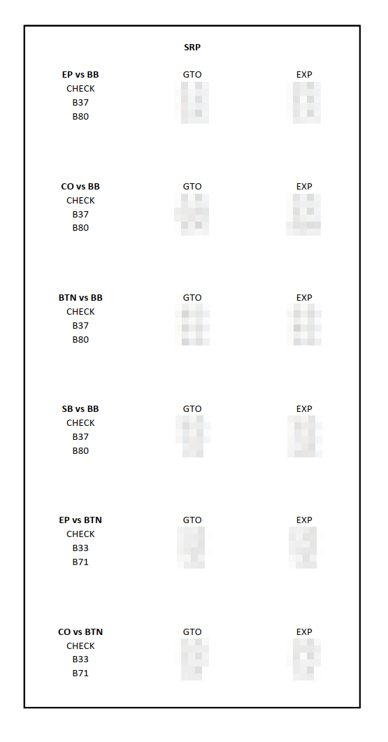 In the Flop Frequency Report, you'll get a full overview of how optimal cbetting frequencies change on the flop when facing population ranges instead of GTO ranges. For every spot and position (SRP, 3bet, 4bet).